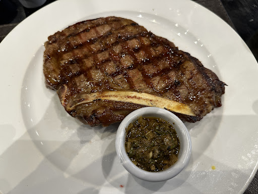 Read moreFuimos a comer 2 personas al almuerzo a la sucursal que queda en el Costanera center. La comida está bien y cumple adecuadamente, yo me pedí un asado de tira (500gr), la porción estaba bien en el tamaño, pero las tiras eran muy delgadas, quizas 1 dedo de ancho, personalmente prefiero que el asado de tira sea un poco mas grueso, pero entiendo que es una medida para agilizar lo tiempos en la cocina. Pedí la carne a 3/4 porque casi siempre en todos lados se les suele pasar un poco el punto, pero en este caso les quedó perfecta, asi que mis felicitaciones a la cocina. De acompañamiento me pedí unos vegetales salteados y estaban bien. De entrada prové unos champiñones rellenos y no los recomiendo para nada, cuando me los estaba comiendo escuche que la mesa de al lado preguntó por mi plato y el garzón les mencionó que esa entrada no se preparaba en la cocina, que venían congelados y simplemente se calentaban antes de servirlos. Por otro lado, al principio nos trajeron un pancito con pebre y mantequilla, como es costumbre. El pan estaba frio, en otros lados lo suelen dar un poco mas tibio. El pebre era una pasta espumosa, se nota que tiraron todo a la licuadora sin darle mayor importancia, cero textura. La peor ofensa fue la mantequilla, era menos de una cucharada de una mantequilla casi congelada, de un color gris y una textura cuestionable. Escuché que en la mesa de al lado preguntaron que era y les explicaron que era una mantequilla con salsa de soya, no entiendo muy bien en que contexto un local de carnes daría mantequilla con salsa de soya, pero por la textura y la presentación puedo asumir que la mantequilla que tenían se le puso rancia así que intentaron disimularlo con soya y congelándola. Lo he visto en otros locales y me parece el colmo. En resumen, si van a ir sepan que es un poco caro para lo que es, no pidan ninguna entrada y céntrense solo en la carne, coman algo antes de ir. El servicio y 10/10, los garzones super atentos y siempre disponibles, en mi mesa había un cuchillo que no cortaba nada y me lo cambiaron al instante, el ambiente muy bueno, se...