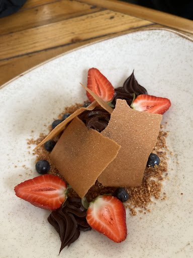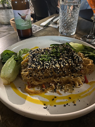 Read moreEl día de ayer a la hora de almuerzo visitamos este restaurante con la familia. Es muy bonito, tranquilo y había poca gente. El ambiente tiene una temática agradable y la terraza tiene harta vegetación. Pedimos la entrada de alcachofas lenga (no tomé fotos), que estaba muy rico. La textura estaba suave y con un ácido muy agradable. Luego, pedimos cocktails para tomar, también limonada y kombucha. Todo bien, y entiendo que por la temática del restaurante no vendan bebidas de fantasía pero a veces dan ganas de almorzar con una jajajaj, fuera de eso todo bien. De plato de fondo, pedimos un plato de cada uno del menú. Sólo tomé fotos y probé el de mi pareja y mío: tofu anjolí y ravioli belloto. Ambos platos estaban buenísimos. Los fideos de arroz del primer plato tenían ají pero no muy fuerte, el tofu estaba muy bien preparado y rico. Mi única observación es que no te dejan la salsa unagui. Los ravioli tienen una masa muy suave y agradable en textura, como también se destaca la salsa que está muy bien equilibrada. Para finalizar, para compartir en pareja, pedimos un miso chocolate. La presentación hermosa, no es muy dulce por lo que es perfecto para cerrar un almuerzo. Las frutas ácidas hacen que el postre sea espectacular. La atención es buena, atenta pero no excesiva que se agradece. Recomiendo este restaurante para ocasiones especiales, ya que los precios igualmente son elevados pero esperables para el sector. Además, las porciones no son muy grandes. Es una excelente opción si quieres probar cocina vegetariana y/o vegana. Si bien, sólo dos de los seis que éramos no comían carnes, todos disfrutamos bastante el almuerzo y concordamos que es un lugar muy bueno con platos de alto nivel. Mi recomendación para el restaurante es que, debido a los precios y la espera de los platos, podrían colocar algo “para picar” por mientras, como unos pancitos...