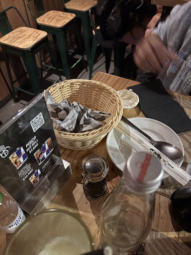 Read moreVinimos a este local por recomendación, muy bien ambientado, limpio y la decoración linda. En cuanto a los bebestibles, no tenían vaina, pero pedimos mojitos, muy bien preparados y ricos, tequila margarita, muy sabroso, y uno llamado "para olvidarte" preparado con tequila, gin y toque de pimienta y sal, que me gustó demasiado esa combinación de sabores. En cuanto a comida, probamos un ceviche mixto, a base de salmón, camarones y pulpo, muy sabroso y los cortes perfectos, la cantidad muy buena, lo recomiendo mucho. La espera fue unos 25min que encuentro normal. Y la atención buena. Nos indicaron que después si el momento lo ameritaba juntaban las mesas y se hacia una especie de pista de baile en el centro, pero nos fuimos antes. Los precios encontré...