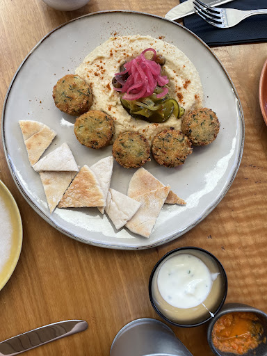 This is a really lovely spot with a wonderfully designed interior. BUT.. the food lacked in creativity and flavour, I didn't understand the intention of the menu. The hummus was the nicest dish, but anyone can make hummus. The spicy fried prawns were really disappointing not spicy and fluffy not fried. The moules frites were dull. Its a shame, but im just as...