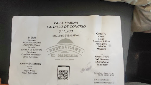 Read moreFuimos dos veces a este restaurant, porque nos pareció bastante bueno en la zona de Pucón , después de encontrarnos con muchos restaurantes de baja calidad y elevados precios que perjudican el turismo . Pedimos cazuela , que está dentro del menú , el cual incluye , ensalada y bebida, muy buena cazuela, muy buen tamaño y a buen precio (5.000) , todo muy fresco , sabroso . Por otro lado pedimos un lomo con puré (7500) de muy buen tamaño , carne de buena calidad y en el punto de cocción pedido, pan , muy rico pebre y una buena atención . Totalmente recomendable como picada , no...