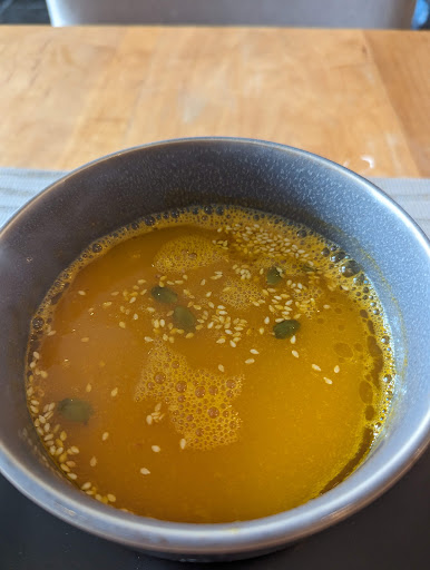 Read moreFood : I got the pumpkin soup, falafels (they suggested it would go well with the soup and they were so right!) and the lemon poppy bread with peanut icing. Honestly, as a vegetarian that's somewhat struggled to find good food in southern Chile, this was such an awesome treat. The food was amazing and Nicolas and his wife's reason to open the restaurant was every more lovely to hear. (Update: it was so great the first time that I decided to go back here after my W trek and got the Thai curry. Would 100% recommend!)