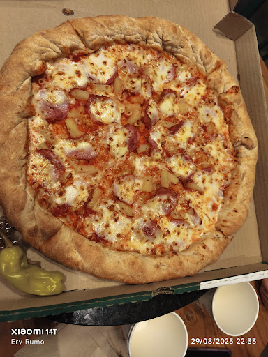 El servicio en caja fue rápido y amable, quedaron de llamarme por mi nombre cuando la pizza estuviera lista para servirme en el local. Esperé 40 minutos y noté que llamaban a personas que llegaron después de mi por lo cual bajé a preguntar por qué no me llamaban si llegué antes que otros clientes que ya estaban comiendo y llegaron después y la respuesta que me dió la chica es que no le habían puesto el adhesivo que identificaba la pizza que era para servir en el local y no para llevar, así que les recomiendo siempre preguntar por si las dudas ante la demora. Por lo demás pienso que la pizza hawaiana en mi caso, estaba rica y me encantó que te pongan un ají verde y una salsa que a mi gusto y parecer es una mostaza que por cierto estaba deliciosa. Precio acordé al tamaño y calidad del producto. En cuanto a la atención pues no ví garzones en el lugar así que no puedo darle 5 estrellas y mi calificación sería...