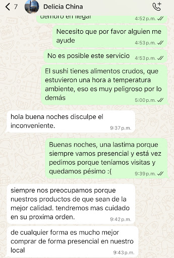 Read moreQuiero dejar constancia de una pésima experiencia vivida recientemente en el restaurante Delicia China, al momento de comprar un pedido de sushi (hot roll). Desde el inicio la atención fue poco cordial. Al llegar, ni unas buenas tardes, se nos informó que el tiempo de espera sería de 30 minutos. Sin embargo, pasados más de 35 minutos, notamos que los pedidos se acumulaban en el mesón de despacho sin que las recepcionistas hicieran el más mínimo esfuerzo por verificar o entregar los pedidos listos. Estaban completamente desconectadas de lo que ocurría, y en ningún momento demostraron tener criterio, habilidades funcionales ni preocupación por los clientes. Cuando finalmente se dignaron a entregar los pedidos, recibimos el nuestro, el cual había estado al menos 15 minutos abandonado en el mesón. El resultado: un hot roll completamente frío, perdiendo toda gracia y calidad, algo inaceptable en este tipo de comida. Además, quiero destacar que el personal de recepción demuestra cero habilidades humanas, cero habilidades funcionales y ni hablar de habilidades técnicas mínimas para su rol. Lo único que realmente parecían hacer con soltura era hablar por teléfono, ignorando lo que pasaba a su alrededor. Esta experiencia refleja una falta absoluta de compromiso con la atención al cliente y una gestión deficiente del servicio. Como consumidor, uno espera respeto por su tiempo y por lo que paga. Ojalá tomen medidas concretas, porque claramente algo está fallando a nivel de personal y...