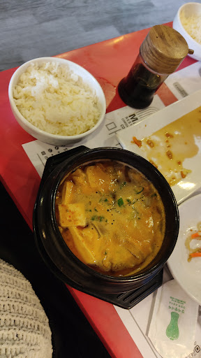 Read moreLlegamos a las 4pm porque estaban todos los otros restaurantes llenos. Leyendo los reviews de acá, al parecer era rico. Lo primero es que se demoraron al menos 20 minutos en llegar a la mesa para preguntar por los bebestibles, los cuales llegaron con vasos de plástico. Para tener precios de restaurante (2k una bebida en lata, 8k un plato individual), podrían al menos tener vasos de vidrio. Mesas y sillas en pésimo estado. Dejando eso de lado, la comida se demoró casi una hora en llegar, eran cuatro platos, cuando llegaron dos, esperamos al menos 15 minutos para que llegarán los 2 faltantes. Porciones ok, el tteobokki aguaaado (era una sopa prácticamente), el banchan 3 platitos desabrido para 4 personas.