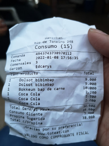 Read moreTrataré de ser lo más imparcial posible. El lugar es agradable de ambiente y la comida es sabrosa (pedí Sogogy deopbap con un jugo de maracuyá). Yo había venido hace 7 años a este restaurante y guardaba buenos recuerdos de aquella visita. Mi reparo es cuando recién entré al local, ya que no había absolutamente ningún mesero y todas las mesas del primer piso estaban ocupadas. Como no había nadie a quien acudir, subí a buscar un espacio disponible y había dos habitaciones, una vacía y otra con comensales. Uno de los espacios estaba vacío, entendí que ese lugar no se debía usar, por lo que fui a donde sí había gente. Resulta que todo ese lugar estaba reservado y cuando llegaron los meseros y me vieron, se espantaron y me hicieron bajar al primer piso. Allí abajo se preguntaban entre sí ¿No lo vieron subir? pero después la mesera que quedó a cargo mío, que por cierto fue muy amable, me dijo que subiera y me ubicó en el otro espacio donde no había nadie. En ese intertanto, otro mesero me decía que bajara y yo le hacía saber que me estaban pidiendo estar arriba. Estuve a nada de irme por lo vergonzoso que me hizo sentir toda la situación, dado que los demás comensales también se percataron del problema. Creo que si un lugar está lleno y llega más gente, hay que ser claros con respecto a los espacios que se deben usar y cuáles no. Nunca quise hacer sentir incómodo a nadie ni mucho menos entrar a un espacio que otros clientes habían reservado, eso se entiende y se respeta. De hecho, un señor de los que estaba ocupando ese espacio reservado, un hombre mayor coreano, se percató de la situación y fue minutos después del inconveniente a la otra habitación a preguntarme si estaba todo bien. Con todo, sigo recomendando el lugar. Puede que sea un caso aislado, pero esta visita no fue para nada agradable y la comida no sentí que...