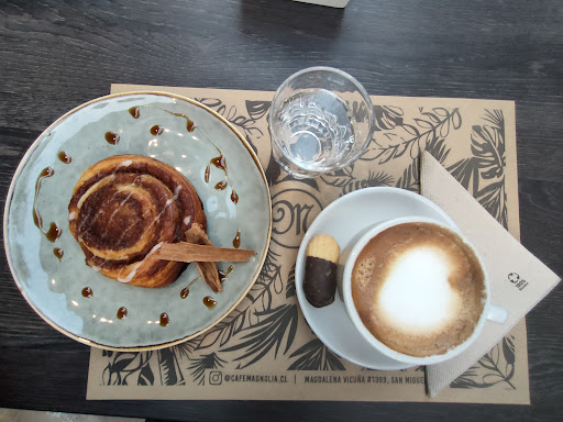 El café estaba rico, pero lamentablemente lo sirvieron con una temperatura un poco baja, lo que hizo que no se apreciara lo suficiente. El rollito de canela no me gustó mucho, ya que estaba demasiado aceitoso, e incluso estaba un poco quemado por abajo, entonces tampoco tenía una buena textura. La torta que pidió mi pareja estaba aceptable, pero se sentía como una torta clásica de supermercado.
