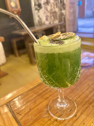 Read moreVisited this place twice during our trip. Cafe has a nice selection. Food here is really good - we tried quinoa sandwhich, mushroom and veg croquettes, shrimp dish in garlic which came with bread. Complementary tortilla chips with hummus was given. Hummus tasted so good. They have other vegetarian options also on menu. Everything we tried was fresh tasting and good. In drinks had the bloody marry and lemonade with mint and ginger. Lemonade was too sour and we couldn't drink it. They have water jug with oranges and mint in it in a jug from which you can pour in the cups kept near it. For dessert we had cheesecake with raspberry sauce on recommendations of one of the servers - again was very good. Walls have art and graffiti on them -...