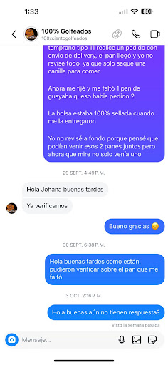 Read moreMe siento en la obligación de dar una estrella , claramente no es por el producto porque los panes son exquisitos, si no por el mal servicio post venta, el día 29 de septiembre realice una compra con delivery y el pedido me llego incompleto faltando 1 pan, me comunique con la tienda avisando y me dijeron que revisarían, cosa que fue una completa mentira, ya que nunca se comunicaron para dar respuesta, volví a escribir preguntando por mi caso y me dejaron en visto. Hasta la fecha no respondieron nunca, hoy ya deje un mensaje con mi descontento por la forma en la que manejan este tipo de casos y también dejo esta estrella porque la plata no la regalan, yo tengo como probar que no llego ese pan porque manejo cámaras en toda mi casa , ni respondieron con el pan ni con la devolución, terrible no todo son ventas muchachos, también tienen que hacerse responsable de los errores humanos que todos podemos cometer pero ni de eso...