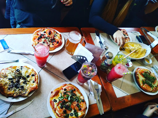 Es un lugar buenísimo, un muy buen ambiente con música variada y agradable. La pizza y las papas son deliciosas y los tragos también. Yo probé un mojito mango y un laguna azul. Se puede pagar con efectivo, tarjeta y Junaeb (para estudiantes). Tiene un segundo piso que cuenta con una decoración bastante agradable y con buena vista. En la oportunidad en que fui con unas amigas, nos atendieron dos camareras, una de pelo negro largo nos dió un pésimo servicio, en vez de simplemente darnos la carta nos preguntó si comeríamos o tomaríamos, como si no pudiésemos hacer ambos. Nos dijo que el local no dejaba que juntaramos las mesas, por ende solo pueden comer en mesas juntas 8 personas máximo o si no en mesas separadas el grupo. Al traer los tragos dijo "aquí está el mojito de mango o maracuyá, lo que sea" lo cual fue desagradable, su rostro denotaba que prefería que la mataran a estar atendiendo y por último cuando le pedimos la carta para seguir ordenando, nos trajo la cuenta. La otra chica que nos atendió era rubia con chasquilla y fue bastante amable y simpática, siempre con una sonrisa y buena disposición, hasta bromeó con nosotras. Una pequeña cosa mala es que en el baño de mujeres no había jabón. Pero en general, es un excelente lugar al cual volvería a ir. También he de añadir que fuimos un día miércoles en qué tenían la promoción de cualquier papita a $5000 (las que incluyen distintos tipos de salsas y...