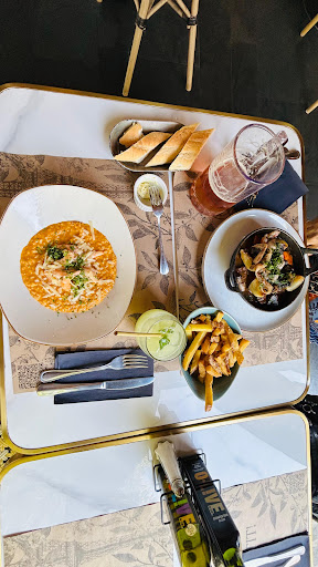 Nuevamente los garzones hicieron vista ciega a nuestra mesa y tenía que estar llamando los para que retiren mi plato y poder pedir el plato de fondo, en eso nos dejaron en espera 25 minutos sino más mientras todas las otras mesas recibían su comida e incluso algunas ya finalizaban de comer, tuve que nuevamente solicitar a un garzon para que se acerque y pedirle los platos de fondo a lo que me indica que los habían olvidados, y los platos servidos obviamente llegaron de mala manera y mal presentados, recuerdo haber pedido ñoquis en salsa con queso azul y me fue servido una sopa de leche con un pedazo de queso azul entero y los ñoquis a medio cocer, a mi pareja un rissotto de trufa ella nunca había probado eso así que lo encontró bueno pero cuando lo revise el grano estaba reventado, poco hecho, y podía dar vuelta el plato o la cuchara y el rissotto quedaba pegado al plato y la cuchara.