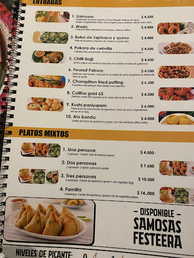 El mix llegó con las samosas el wada y el pakora quemados, al punto que el chef intentó esconderlo dándoles la vuelta en el plato, pero era imposible no notarlo. Las samosas estaban insípidas, no tenían nada de sal. La cebolla, por su parte, estaba de un tono sospechosamente oscuro, señal de que el aceite de la fritura estaba demasiado caliente o llevaba usándose más de la cuenta.