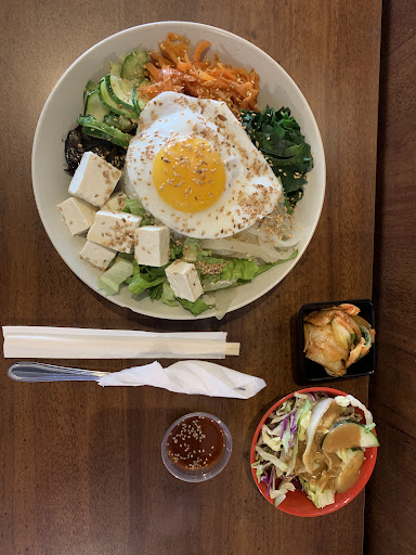 De todos los restaurantes coreanos de Santiago a los que he ido, este es el menos coreano. Pedí BibimBap y un extra de Kimchi. El bibimbap venía con una ensalada pequeña como Banchan. Primero, el Bibimbap tenía espinaca en vez de algas, cebolla, quesillo (eso si nunca lo había visto), y lechuga (algo que vayas donde vayas, no debería estar en el bibimbap coreano). Todo lo que había en el plato podrías perfectamente comprarlo en el supermercado (o en la feria) y hacerlo en casa, sobretodo porque el sabor recordaba más a arroz con verduras que a un verdadero plato coreano. La pasta de ají (Gochujang) estaba muy diluida y el kimchi parecía comprado. La ensalada que daban como banchan tampoco se salvó: el aderezo tenía azúcar sin disolver, así que tenía una textura granulosa. Por lo menos el staff era amable. No volvería a ir, ya que los platos cuestan lo mismo que en otros lados pero la calidad de los ingredientes que usan deja mucho que desear (sobretodo porque no hay nada especial o que no se coma en Chile!!! (Como los rábanos chinos, algas, brotes de soya, etc. que si se usan en un bibimbap...