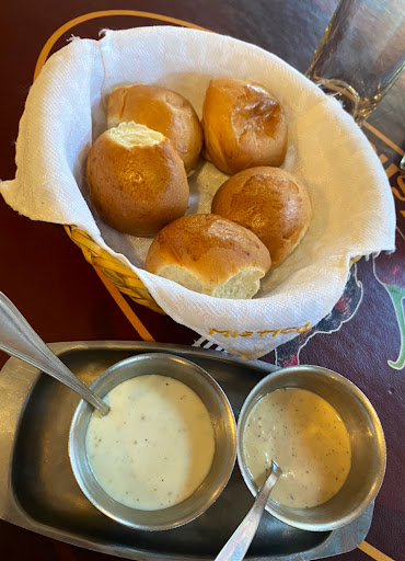 The bread rolls are not freshly baked. They are pre-heated and served with a sauce that’s been out for way too long.