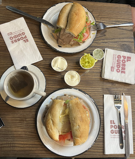 El Pobre Guido ....es un lugar no tan solo de consumo de buena mesa ...tambien es un lugar de reunion familiar en donde tus amigos tambien cuentan....puedes comer en marraqueta historias y experiencias de la feria persa Bio Bio.... del barrio Franklin ....y del viejo Santiago ...su servicio esta atendido por generaciones de experiencia ...ya que ahi trabajo don Guido ¡¡ solo !! en la calle luego instalo un toldo mas tarde unas mesas y sillas y en ese intertanto su familia crecia de numero y de edad y se a traspasado de generacion en generacion el famoso arte de hacer que la gente ...primero sea muy bien atendida ...segundo ...tenga un lugar comodo y limpio en donde comer ...tercero...un ambiente familiar y agradable ...y cuarto...una marraqueta de muy buena calidad y en su interior un cerro de carne de cerdo ...cocinada a la plancha en sus propios jugos donde a lo maximo un poco de sal y oregano coronan esta receta ....El Pobre Guido ... es un lugar que marcara tu vida y te dejara un antes y un despues en la experiencia de comer carne en marraqueta ...