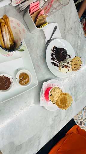 Lamento escribir esto, hace unas semana vale decir , cercano al 18 de septiembre fui a degustar un helado a este lugar, lo encontré interesante ya que ir al centro de Santiago se ha hecho muy complicado por la delincuencia y la inseguridad del entorno, pero cuando entre a este lugar dije guauu, al aire libre plaza de arma atención excelente, pedimos los helados , la atención del anfitrión muy bien, la niña súper amable, pedí mi helado con características específicas, y sin ningún problema, solucionado, y lo recomendé, fui este fin de semana con mi familia completa 8 personas y de verdad , dejo mucho que desear, sucio el lugar, estaban con poco personal, estaban los utensilios de otros comensales encima, se demoraron, el sándwich de lomito estaba frío , pedimos calentarlo, solo calentaron el lomo, el pan frío , y para más pedimos agua soda por los helados, el agua era de la llave, y con 20 minutos después, fue muy decepcionante, el pistacho no era el mismo, la crema está agria, fue triste porque lo recomendé mucho , así que es una pena, pero lo pensaré nuevamente si volveré a este lugar, habían hecho la deferencia, pero es...