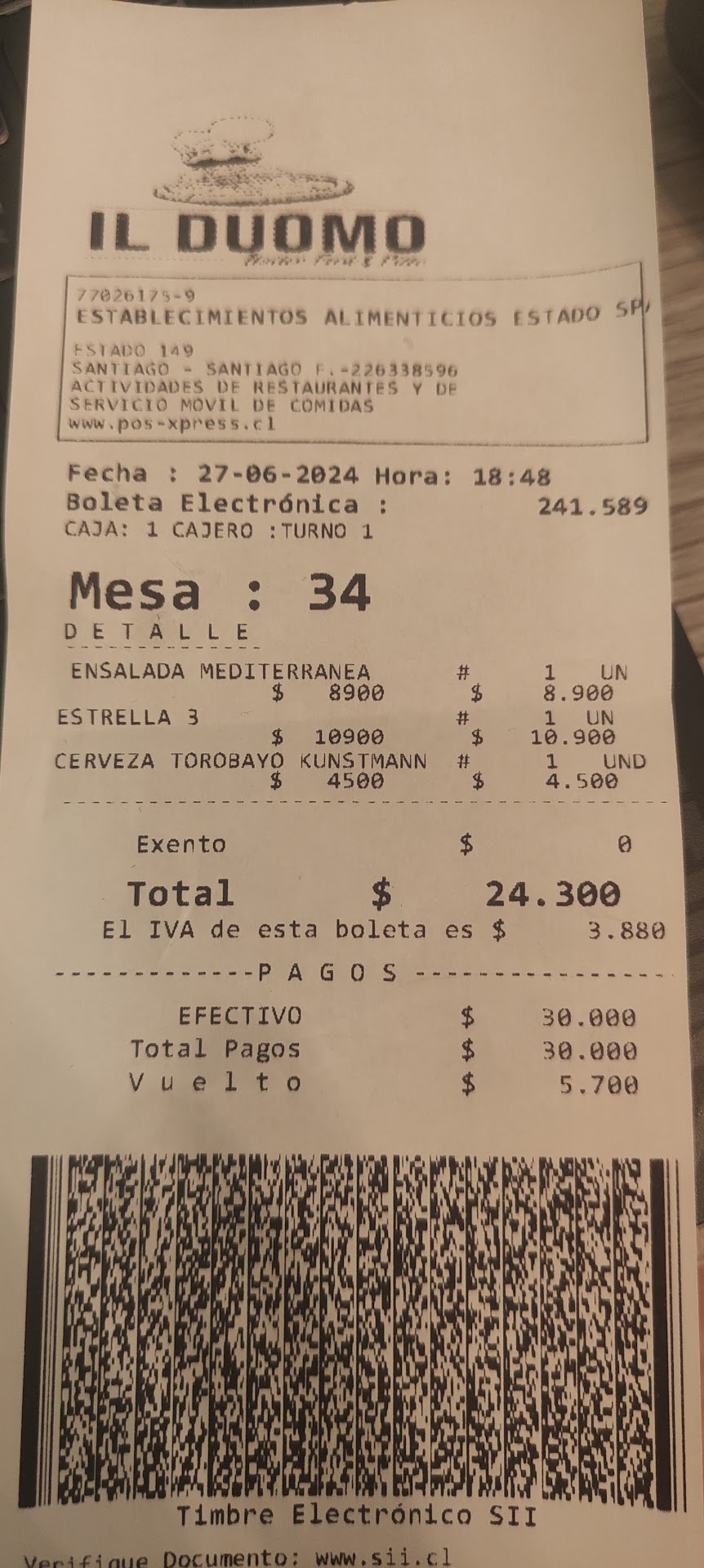 Read moreBeware of fraud, I'm a foreigner doesn't familiar with Chilean money, when I pay 30,000 and should return 5,700 the clerk only return me 2,700. CLP3,000 is shortage. Cause I'm in a rush didn't notice that. Next time anybody go here please notice the...