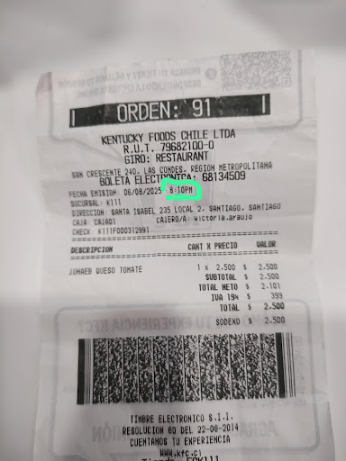 Read moreTerrible la experiencia, no cumplen con el horario de cierre, en la caja nos querían cobrar más del monto, el cajero y encargado super groseros, nos indicaron que el servicio solo era para llevar porque estaba muy lleno, recibimos el pedido más de una hora después en ese momento ya estaba todo vacío y qsubimos a comer al igual que la persona que compró antes que nosotros, pues al subir y sentarnos se fueron detrás de nosotras el encargado de nombre FRANCO y el cajero de Nombre RENATO a decirnos que debíamos bajar solo a nosotras y no a las personas anteriores, eramos dos mujeres con dos niños pequeños nos hicieron pasar por la vergüenza de tener q bajar nuevamente a comer abajo mientras los niños lloraban, una vez abajo después de una discusión el encargado nos dijo que no regresamos al local a comer, realmente una experiencia horrible y más para los niños, el personal escuchando música a alto volumen, gritando garabatos, las mesas asquerosas las hamburguesasy papas muy frias mientras el personal conversando, lo único que salvo fueron las dos chicas que nos entregaron la comida muy amablemente de resto ni lo recomiendo ni regresaria a ese local, pésima ambiente, pésimo trato, la comida buena pero fría y 1 hora de espera. No se si fue un acto de xenofobia por ser venezolanos y ellos ambos chilenos o racismo por ser negros, pero el trato fue pésimo y específicamente con nosotras...