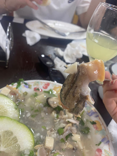 We loved our lunch here! We chose the boneless fish and the seafood soup, both of which were very affordable. But then we were served a seafood broth, rolls, tiny pisco sours and the most wonderful red sauce ever. The fish was very fresh and I've never had seafood soup so full of different types of seafood! We entered through the Central Mercado and were drawn to the rustic ambiance. The wait staff were very patient and friendly with these english speakers. Everything about this meal and this little restaurant...