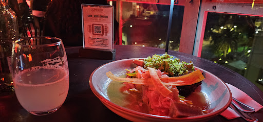 Second night. Second awesome experience. When we arrived, there were no seats by the window. Our server Alexandra very nicely offered to call us up from our room in the hotel when one opened. 10 minutes later we were seated with two delicious cocteles - the Caribbean Sweet is amazing. We enjoyed the ceviche (again) and the shrimp empanadas. The plateada de res as an entree was, sin duda, one of my favorite dishes I’ve had. Seriously succulent, and the variety of fungi/mushrooms give it an exquisite flavor. Perfectly paired with the bottle of Marques de Casa Concha carmenere wine. Alexandra was awesome, efficient (but she gave us plenty of space), and came through with great recommendations. Our tres leches dessert was just average - we are used to a more moist, Mexican version - but still tasty. We are returning to Santiago in a week and can’t wait...
