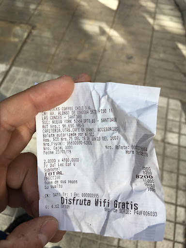 Read moreAcabo de ir a comprar , el local estaba prácticamente vacío pero todos los q atienden estaban jugando cartas y gritando, como a los 5 minutos se dieron cuenta q estábamos y una niña gritó ay gente!! Nos atendieron y todo y en ningún momentos los otros 3 se pararon , al contrario siguieron jugando y gritando. Algo incomodo , compre los Fc Dul lec y salí por que iba al cerro Santa Lucía , pero ya llegando al cerro los probé y estaban asquerosos , cero sabor , cero dulzura , mucho hielo, se nota que se hizo una mala pega . Conozco la política de starhuck, pero estaba tan lejos y después tenía que ir a providencia por lo cual fue lo único por lo que no me devolví, subo la foto hoy día sábado 23 de marzo para avisarle a starbuck que las 3 chicas y el joven que atendieron hoy estaban haciendo cualquier cosa menos trabajar..sería bueno que...