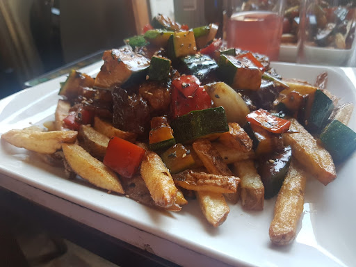Read moreLlegue con expectativas de probar los sabores de este local, y fue totalmente decepcionante, se aplican medidas sanitarias, pero no se pide pase de movilidad,no apto para personas con movilidad reducida ya que el local se encuentra en un segundo piso. Decoración muy llamativa y colorida. Para comenzar pedimos unas kambuchas el local cuenta con varios sabores por lo cierto muy ricas. De plato de fondo probamos un saitan con papas fritas y verduras salteadas,la presentación del plato es buena,abundante comida,con respecto al sabor este no es malo pero tampoco resaltan los sabores, el seitan es una buena cantidad textura grata,las papas fritas tenian exceso de aceite lo cual se sentia en el paladar, además de exceso de aceite estaban saladas lo cual se hacia dificil disfrutar de la comida, la comida en general salada con mucha soya y sal . La atención del local buena, el tiempo de espera para recibir los platos es de aprox 1 hora, el comensal debe preguntar por que el tiempo de la demora ya que no se informa. No se da nada como picoteo para esperar el.largo tiempo de espera. Mientras esperamos los platos,se visualiza a un hombre de la cocina que sale hacia la barra con un vaso shopero en la mano lo llena de cerveza y regresa al area de cocina... habla muy mal del personal de cocina, ya que ningún plato por lo que se descripe lleva cerveza lo cual hace pensar que se debe alcohol mientras se preparar los platos de los comensales... Con respecto a los baños es aseo de estos es precario sin papel higienico,rallados y piso sucio,espacio reducido para poder ingresar. En general no volveria a ir a este local a mi parecer tiene mas puntos en contra que positivos fue una...