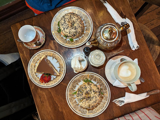 Pedimos una tetera de té de 330 ml (5.000 CLP), un café moka de 330 ml (5.200 CLP), dos sándwich de Sándwich queso de cabra (8.900 CLP c/u) y pagamos un total de 28.000 CLP + 10% Propina. Aproximadamente 15.400 CLP por persona. El menú y sus precios los puedes consultar en la página web de la cafetería.