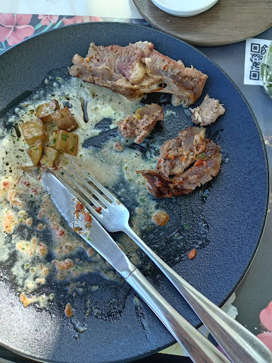 Pedimos lomo a la crema, y la experiencia fue decepcionante. La carne estaba llena de pellejos, tanto que más de la mitad del plato era prácticamente incomible. No esperaba un corte de primera calidad, pero sí algo mínimamente aceptable para el precio y la categoría del lugar. La textura era desagradable, y el plato, en general, no cumplió con lo esperado.