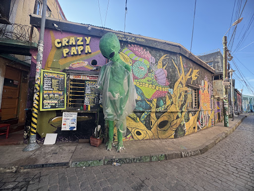 If you find yourself admiring the street art of Valparaiso and realize you are hungry, Crazy Papa is the place to go for a quick bite. The Completos Italiano should be your go to, and why not treat yourself to El Terremoto (the earthquake) at the same time. It might not look like much, but the food is super tasty, and the staff...