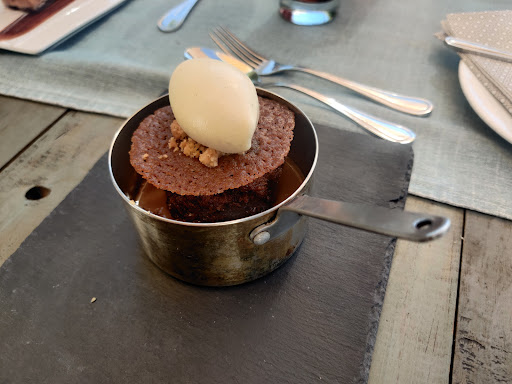 Read morePara llegar al restaurant la subida en auto es complicada si es que no eres un porteño autóctono, y si logras subir, arriba no hay mucho dónde estacionar, así que mejor estacionen abajo y suban a pie, es cerca. Les recomiendo reservar ya que no tiene muchas mesas. La experiencia parte de una forma entretenida ya que hay que subir caminando (jajaj más aún) por un caminito muy bonito (como la mayoría de los cerros no habilitado para sillas de rueda) Bueno, ya hablando de la comida la verdad es que todo lo que pedimos era bueno. No puedo quejarme de nada. Partiendo por los tragos de autor, muy recomendables, bien decorados y entretenidos. Los platos los dividen en actos, primero, segundo y tercero. Como primer acto pedimos Ostión fresco confitado, pan brioche, espuma de parmesano, aceite de cilantro y callampas. Y un Baozi (Vegano) que es un dumpling relleno de ragout de champiñón, caldo de vegetales asados y sésamo tostado. Segundo acto. Malaya a la parrilla. Acompañado de ñoquis de papas, pebre de champiñón y beurre blanc. Y el otro, Berenjena frita con bechamel de coco, queso vegano casero, ragout de berenjena, reducción de miso. Tercer acto. Chocolate (sin gluten) Bizcocho de quínoa, mousse de chocolate, merengue, cremoso de chocolate de leche, nutella casera, helado de vainilla y café. Y un Sticky Toffee Pudding tibio en salsa Toffee, acompañado de helado casero de vainilla. Cuando te traen la cuenta te dan dos trocitos de mantecol casero. No diría que es barato, pero el precio está más que acorde a lo que te llega a la mesa. La verdad es que este restaurant es buenísimo, se nota mucho trabajo en todo, es delicado, fino, entretenido y con la atención muy buena. Se nota una intención de hacer una cocina diferente. La vista, la música y el hermoso día hicieron de ésta una experiencia sublime. Volvería? absolutamente, lo amé. ⭐⭐⭐(Vale la pena el viaje sólo por el restaurant) Síganme en Instagram como...