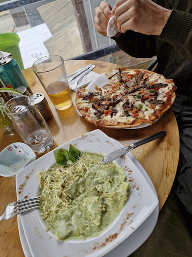 10/10, excelente, las pizzas familiares son buenísimas, la masa, los ingredientes, todo perfecto, la presentación instagrameable. Pedimos 2 pizzas familiares y un menú, realmente rico, el fetuccini Alfredo, la crema de zapallo y las frutillas a la crema estaban muy buenas en general. Nos sorprendimos con el lugar, si bien es pequeño es bastante acogedor, la atención impecable y una hermosa vista de la bahía. Nos fuimos felices, lo recomendamos absolutamente, ojalá no pierdan la calidad. El único detalle, no tenían tocino pero lo reemplazaron por otro ingrediente a gusto sin costo adicional. La limonada menta jengibre estaba maravillosa. Vayan, no se arrepentirán, fue una excelente experiencia, pueden llegar en auto de aplicación, micro, colectivo o auto propio y estacionar en los alrededores, el local no tiene estacionamiento. Ahh olvidé mencionar que los precios son muy accesibles, lo que le da un...