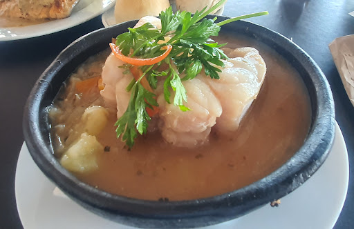 Bote Salvavidas is the only restaurant directly adjacent to the port, making it a busy spot for locals and tourists. It closes at five in the afternoon every day catering to a lunch crowd. During the weekends it is recommended you book a table or be ready to wait in line for twenty minutes to half an hour. The seating processes for walk-ins is excruciatingly slow due to the COVID restrictions and the need to register every person that enters the restaurant. The menu is simple and caters to grilled and fried fish with classics including caldillo de congrio and machas parmesanas. The interior is large with a row of tables next to a balcony offering great views of the port. The service is efficient, friendly but frenetic. There is a need to turn over as many tables as possible. The caldillo de congrio (12,750 pesos) was good but lacked seasoning, while the grilled salmon (10,990 pesos) was aided by a choice of sauces...