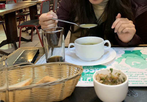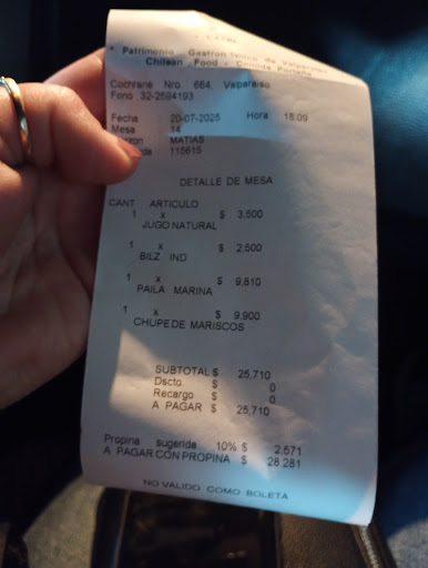 Read moreLlegamos y no habia nadie para preguntar por mesa, nos acercamos al bar/caja y nos dijeron que habia que esperar ya que habia un grupo de 4 esperando tambien, se nos acerco un hombre nos pregunto si mesa para dos y le dijimos que si, nos dijo ya denme un segundo y a los minutos volvio y nos acomodo en una mesa, lamentable para nosotros la mesa "bailaba". pero despues de la lluvia y estar todos mojados al fin nos sentamos. Segun nos comento la chica que nos atendio por la hora (calculo que tiene que haber sido entre 4:00 y 5:00 aprox) ya no habian gran parte del menu sobre todo de pescados/mariscos. asi que dentro de la posibilidades pedimos carne y pescado con ensaladas y papas fritas, no se si fue por que no tenian muchas cosas de entrada o para compartir pero si nos dice que nos puede ofrecer como cortesia de la casa un consome para cada uno, lo que la verdad nos venia de maravilla ya que realmente estabamos empapados por la lluvia. al rato vuelve la chica y nos dice que la seleccion de carne ya no quedaba, asi que nuevamente tuvimos que escoger entre algo que la verdad no era lo que queria. luego de unos minutos de espera se acerca otro joven y nos dice que por la cantidad de gente que habia ido ya no les quedaba consome. yo solo probe la merluza frita, las papas fritas y un poco de la ensalada, la merluza estaba correcta (he probado mucho mejores y tambien mucho peores), las papas que solo pedi por que mientras esperabamos le sirvieron una porcion a una mesa que se veia de la entrada y se veian doraditas, daban ganas, pero aunque no estaban malas no estaban doraditas ni crujientes, la ensalada surtida tipica y la carne (plateada) aunque no la probe me dijeron que estaba blandita. En resumen, la atencion buena todos quienes nos atendieron fueron amables. Los platos buenos correctos, pero ni una maravilla. Si volveria a...