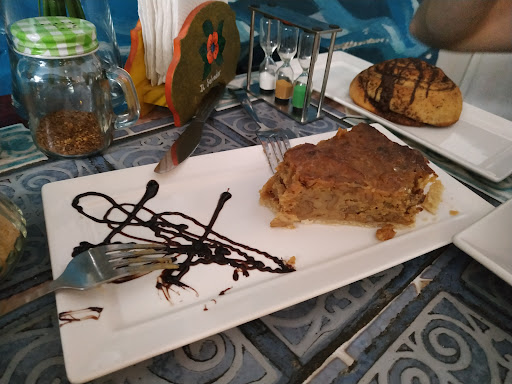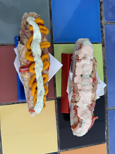 The food here is quite yummy and feels made with intention but be prepared for a wait -- we came at 5pm and had our food arrive at 5:50 (there were only two other tables of two in the restaurant). Also -- We asked for XL sausage completos and were given seitan. Still very yummy but it was a bit frustrating that of the three filling options (seitan, sausage, mushrooms) neither of us got what we ordered. They did give us one small sausage afterwards so we could taste it, which was kind. The decor inside is funky as well. I also want to mention that there are sweet dogs who hang around inside the restaurant as well, but there was an older woman who seemed to know the dogs who hit them multiple times and even tried to kick one in the head while giving them food, which was a bit...
