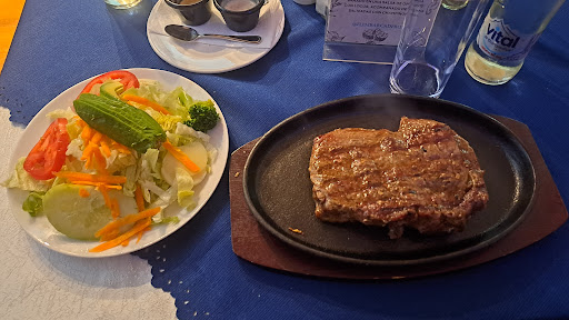 Read moreCarta bien estructurada, con énfasis en la cocina a las brasas que es la característica del local. Pedimos un lomo liso con fetuchini a la huancaína y un lomo vetado con papas fritas y ensalada. El lomo liso estaba algo crudo para el punto solicitado (3/4). El otro plato fue reemplazado por asado carnicero sin preguntar mi preferencia (igual estaba bien en tamaño de porción, textura y se sentía el sabor a las brasas). Las papas fritas eran congeladas, pero estaban bien crujientes. Como segundo acompañamiento en el mismo precio venía una pequeña ensalada con media palta (pequeña), abundante lechuga escarola, una rebanada de tomate y pequeñas porciones de pepino de ensalada, palmito y zanahoria. Atención rápida y...