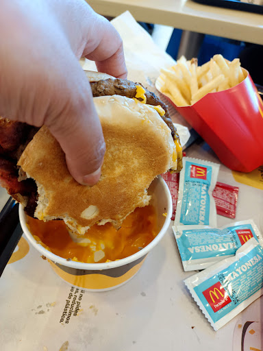 Read morePrimero siempre está lleno pero lleno todo ocupado hay que venir temprano para agarrar mesa la fila es interminable puedes estar esperando 1 hora luego la calidad de la comida ha disminuido es más sientica cuando lo pruebas el precio está bien por que siempre andan generando ofertas o combos especiales en este macdonal la atención no es ni tan mala ni tan buena es regular en verdad deberían igual mejorarla lo bueno es que tienes el baño cerca pero cuando se llena ni siquiera se puede ir el al baño el ambiente de acá es malo por que ya se llena de tanta gente la bulla de la gente hablando es insoportable gritos y habla pero también de lo negativo he venido temprano tipo 12 no me he agarrado fila y he pagado la calidad en si es mala y encuentro mesa como y me voy pero estoy hablando medio día que he venido temprano para comer pero luego ni hablar de la cantidad de gente que se llena lo que si el fin de semana se llena...