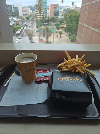 Ha sido por lejos el MC Donald's más bajo que nos hemos comido, y eso que son todos estándar se supone. No funcionaba la aplicación dentro del Mall Marina Arauco de Viña del Mar, así que pedimos en los tótem de auto-atención: una cajita feliz y una hamburguesa triple con queso cheddar. La cajita sin grandes altos ni bajos, los nuguet cada vez más chicos y las papas duquesas desinfladas, como con depresión endógena, pero mi hija la disfruta igualmente. Mi hamburguesa de juguete, me cabía en la mano y sobraba mano!!, indecente y me costó más de $7.000 el combo!! Las papas fritas puestas con desdén y, por lo tanto, la mitad menos, son tramposos y creen que uno no se da cuenta jajajajaja, es frustrante por lo que pagas. Finalmente, el jugo de manzana es lo que parece una muestra de orina, asqueroso!! Para empeorar más la experiencia, era un local recién renovado y con reapertura hace muy poco!! No recomiendo este lugar, hay muchas más opciones en el patio de comidas, con mejor...