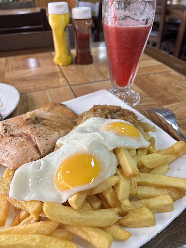Read moreLLegue a este lugar buscando en google y la verdad nos llevamos una grata sorpresa. La comida exquisita, a precios muy razonables ya que ofrecen menu con entrada, fondo y postre. La atención rapida y buen servicio. Tienen una carta bien amplia también, si no quieren en menu del día, y los precios bastante aceptables considerando el sabor y la cantidad. Volvimos a ir 3 días seguidos ya que no hay como el sabor casero a la hora de almorzar. Para que se hagan una idea, uno de los dias el menu era entrada una cama de lechuga con tomate relleno, el fondo pollo saltado al estilo peruano, y de postre un bavaroi de frutilla creo...todo muy rico. 100% recomendable. No se van a arrepentir sobretodo considerando que no hay mucha oferta...