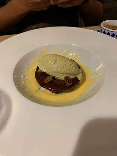 Para o prato principal, optei pelo "Cordeiro ao molho de ameixa e pistache", acompanhado por batata gratinada com queijo Grana Padano e espinafre refogado com manteiga de alho. Este prato é uma revelação. O sabor agridoce do molho de ameixa e pistache complementa maravilhosamente a suculência do cordeiro, enquanto os acompanhamentos adicionam um equilíbrio perfeito. Cada mordida é uma nova descoberta, um equilíbrio harmônico de sabores que surpreende e encanta.