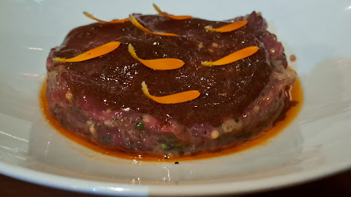 I walked in on a rainy night, sat at the bar starving…. The complimentary home made focaccia was so nice, warm and tasty (I ordered more and I never eat bread). I had the ceviche (this is fresh and different to Peruvian style sauce), grilled octopus and beef chunks.. have to say beef chunks was my favourite ( mind blowing with sweet and tender flavours) contrarian..