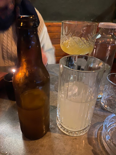 Con mi pareja queríamos probar los tragos de autor y algunas preparaciones que hacen en su local (desde la gingeer beer hasta su carchutería). Lo primero que hizo el servicio apenas nos sentamos fue traernos un pequeño vaso de sangría, cortesía de la casa, y una botella de agua muy fría. Primer detalle que aplaudo porque al tiro me sentí muy bien atendida.