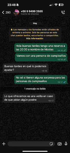 Read moreFuimos con mi esposo a celebrar nuestro primer aniversario , lo que respecta a la comida y atención fue todo maravilloso, mi única queja es referente a la distribución de las mesas , al mirar fotos no se evidencia que exista un área de fumadores , por lo cual no creí que fuera necesario poner en las observaciones al momento de reservar que ni yo ni mi marido fumábamos ( y que por cierto es bastante desagradable para quienes no lo hacemos comer y sentir el olor y humo) y al momento de llegar la anfitriona jamás mencionó esto, solo nos asignó una mesa ( cabe destacar que existía muchísimo espacio disponible y jamás sospechamos porque era un espacio cerrado) creo que tuvimos la peor ubicación , inocentemente creí que al consultarte en el momento de la reserva si celebrabas un momento especial considerarían esto para poder darte una ubicación especial en el lugar , claramente no fue así y aún que como mencioné anteriormente la experiencia gastronómica y la atención fueron excelentes , considero que pasaron por alto consideraciones muy importantes. Pd: no agreguen en el apartado de reserva “ocasión especial” si no se...