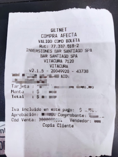 Estas con mis críticas enfocadas en detectar debilidades para que se trabaje en ello. Bar Santiago es un buen lugar para compartir y no debiera estancarse en este tipo...