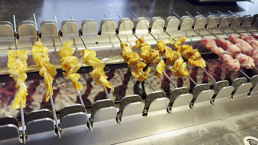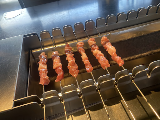 テーブルに自動串焼き機がある 食べ頃になると店員さんが、タイミングよく上の段に置いてくれるので、楽チン