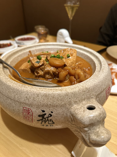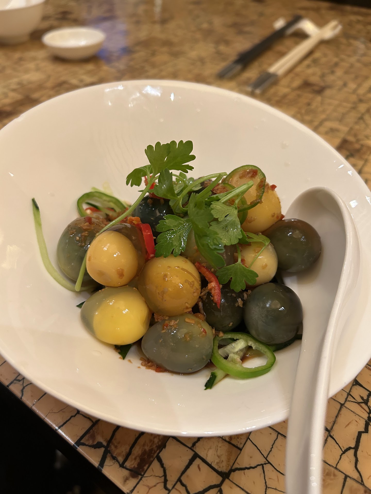 We came here for Christmas Eve dinner and ordered many things. The hostess spoke English and was very sweet. Once you sit down, you're given traditional Chinese 'welcome tea' that is pleasantly warm and sweet. We began our meal with century quail eggs. We expected four or five but were surprised with a bowl of ~15! They were dressed with a deliciously sour sauce and garnished with fresh cilantro and thinly sliced spicy pepper. We continued our meal with a tofu stew. This was my favorite part! The broth had a salty-nutty flavor and the tofu had a nice chew. Another highlight of the meal was the Peking duck. Carved tableside and accompanied by hoisin sauce, scallions cut into brushes,and thin wheat-flour pancakes and steamed buns, it was truly tasty. We also ordered some Sichuan chicken and fried rice. For dessert, we had mango sago - a sweet end to...