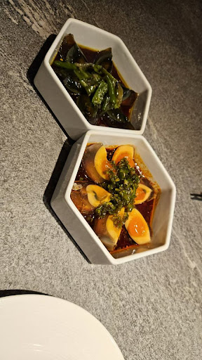 Century Egg (36yuan) : Comes in two variations - the lighter coloured one is less alkaline and I suppose easier on the palate for those not used to this preserved egg dish. The darker one was stronger in flavour and paired well with the charred green chillis and chilli oil. Though, I would caution those who do not like century eggs from getting this dish.