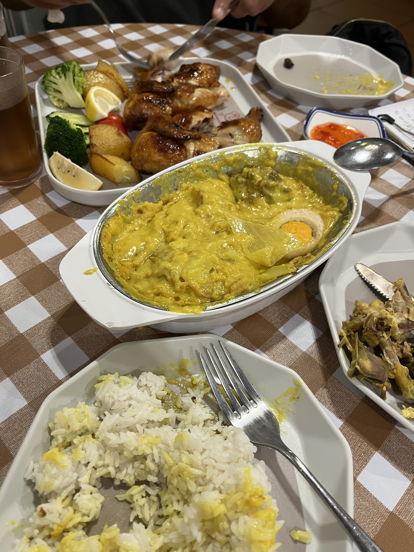 This place is feels underrated. The food here is actually pretty good. We had the roasted chicken and Portuguese baked chicken, (my apologies for the ugly photo of the dish since I ate it before I took a photo). The sauce was seasoned well….albeit a tad too thick. The coconut flavor didn’t come through but They do not skimp on the Turmeric. They also use bone in pieces of chicken. Flavor wise I’d give it a 3.5* but portions are huge. The highlight of dinner was The roast chicken, it had the crispiest crackliest skin. The man next to us had a steak dinner which looks legit to the photos of the menus here. He devoured it as well. The price is decent. Service was good. I’d recommend giving this...