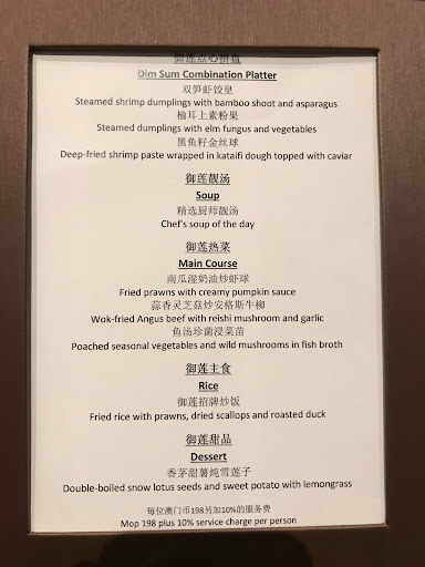 Read moreCantonese cuisine interpreted in a creative manner. We had tomato confit and iceplant salad as a starter. Iceplant salad topping with spherification of mango juice (Molecular cuisine). Crispy fresh plant combined with Molecular fruit. Exclusive yet creative. Although cubed tofu coating with salted egg is kind of staple food, its intense savory coating melted in mouth so lightly, almost forgot it should be high calorie greasy fritters. The rest dishes: baked duck, prawn balls sprinkled with shredded pumpkin, fermented-fish meat cake are tasty too. Worth to go...