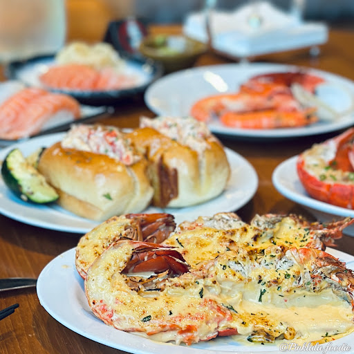 The buffet theme is "Dining from the Kitchen," offering a personalized dining experience that engages all five senses. The restaurant creates custom-tailored meals at each dining table using the freshest ingredients to present an array of delicacies. Guests can order unlimited dishes at once and have them delivered directly to their table by the attentive service staff. One of the restaurant's specialties is the use of fresh lobster, prepared in five different ways to cater to individual preferences: steamed with garlic, baked with cheese, stir-fried with ginger and green onion, typhoon shelter style, or charcoal-grilled. Each cooking method enhances the lobster's texture, showcasing its freshness and quality.