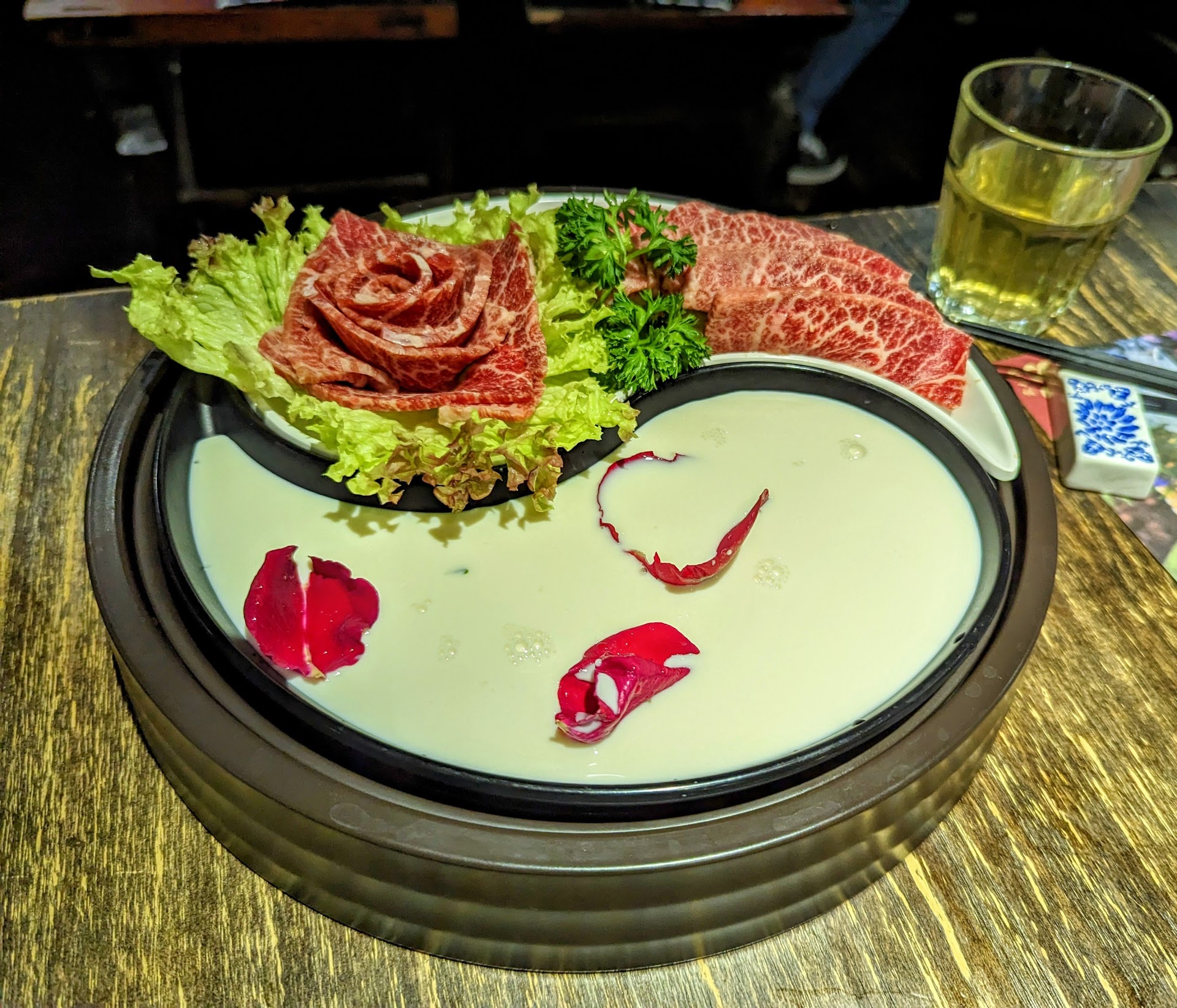Read moreIt is really pricey for what it is. Yes the decorations and stuff is fancy, the owner or chef have put a lot of thought into the soup base with fancy pots. I would think it is still worthwhile to try it at least once to judge for yourself, but I have decided not to return as it doesn't live up to expectations. They charge a high premium on the beef but it was tasteless and only had a few slices, I would say gram for gram you can get a super expensive steak in a hotel steak house. The deep fried golden fish skin, or salted egg yolk fish skin,...